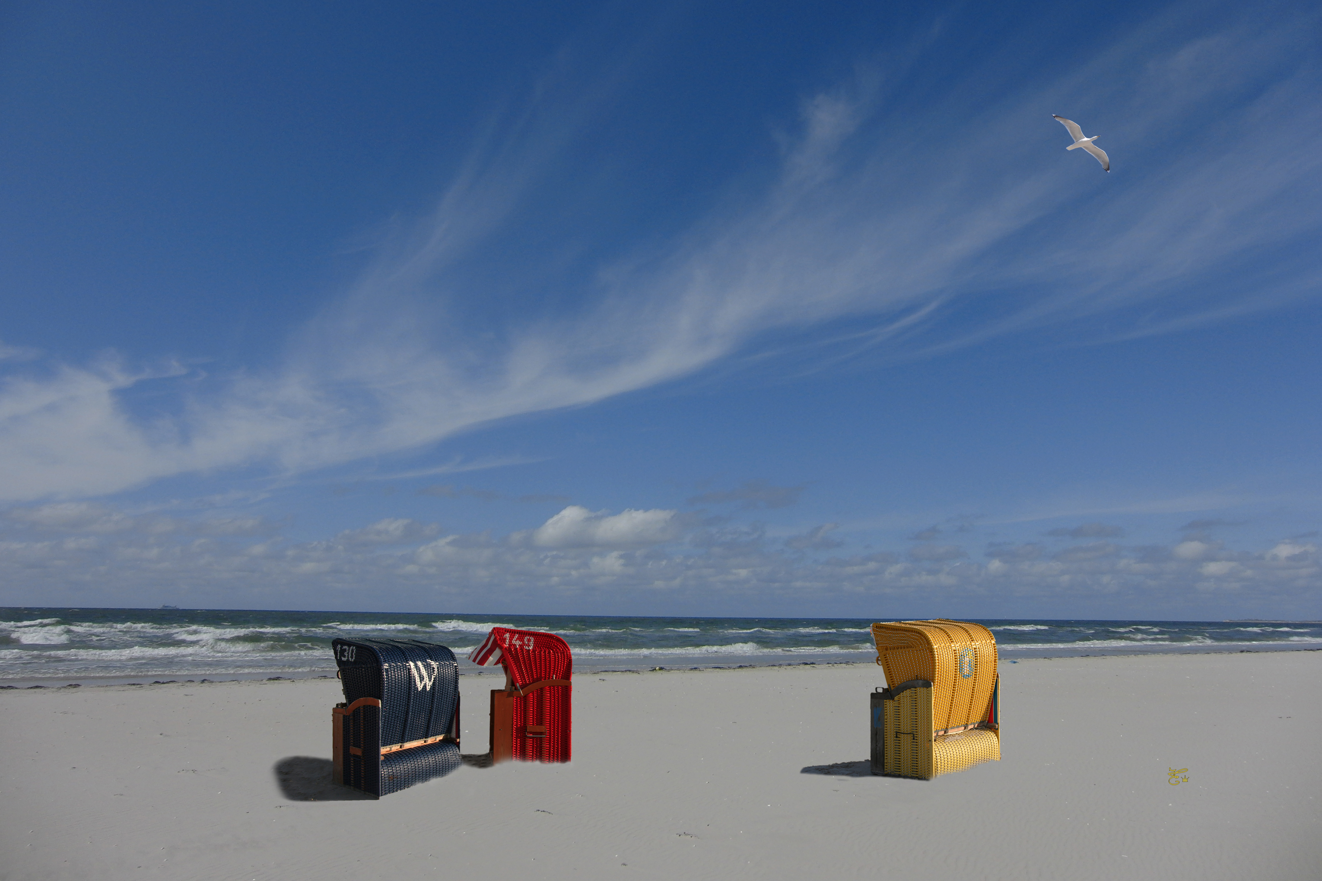 Strandkörbe gelb und blau